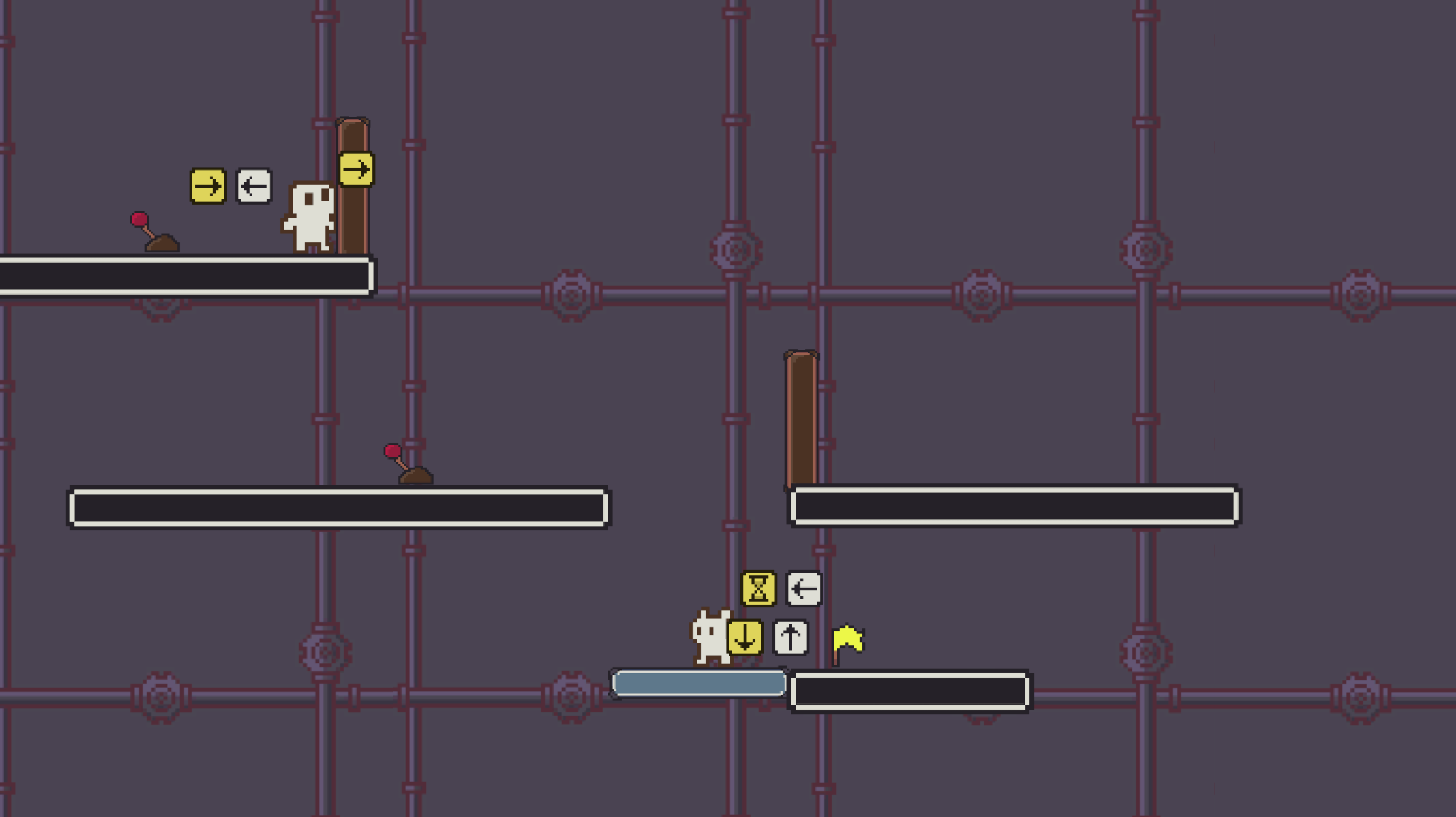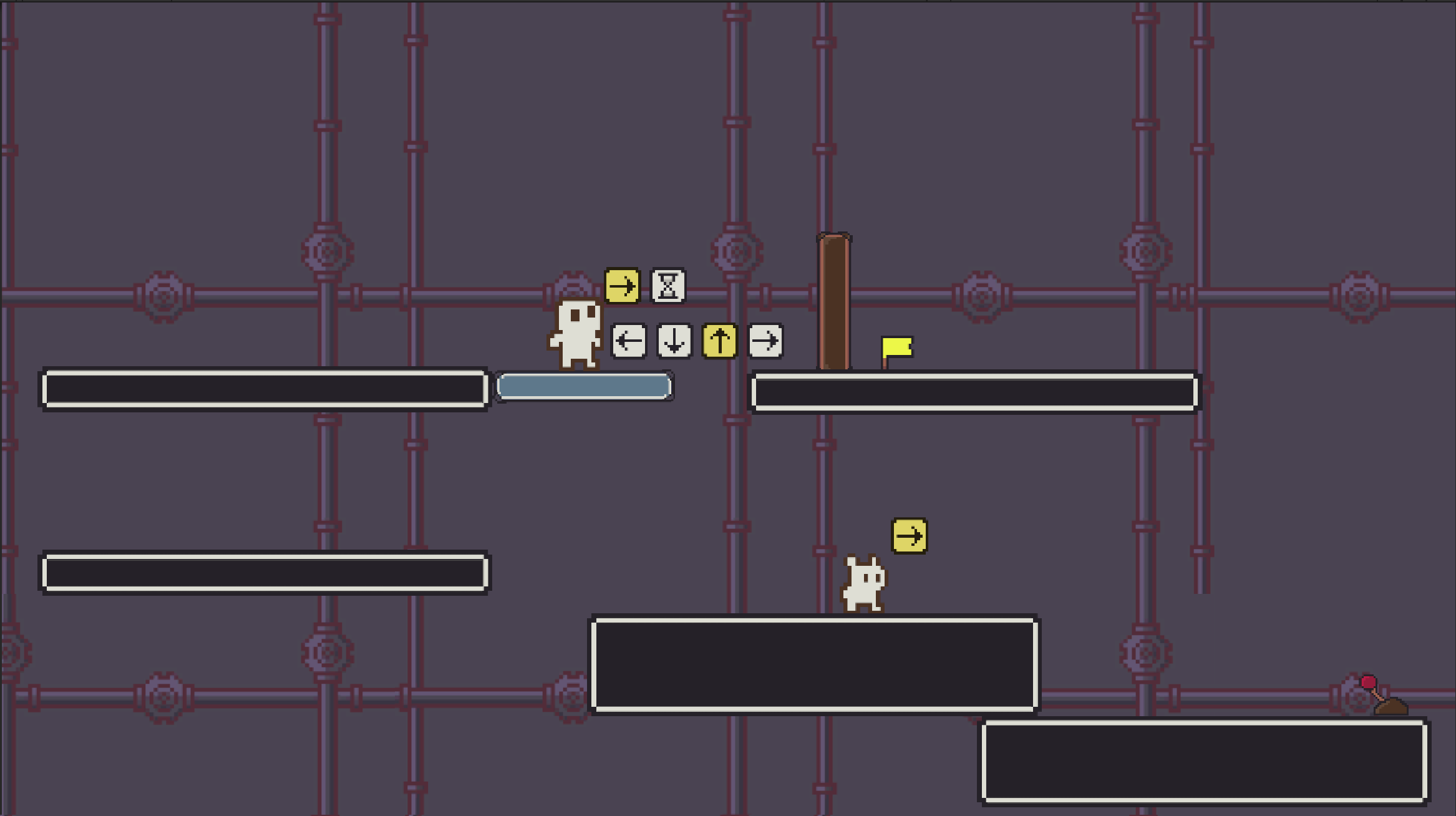 I like the art and sound design a lot. The little "Loop di doo!" exclamation at the end is great. Definitely needs to be faster. Also, you should be able to reset the level WITHOUT resetting all the actions. If you just need to change one thing, it really sucks having to input every action again and kinda made me stop playing.