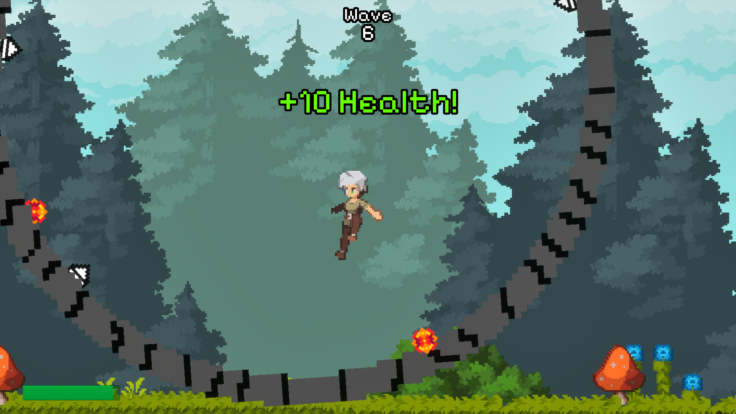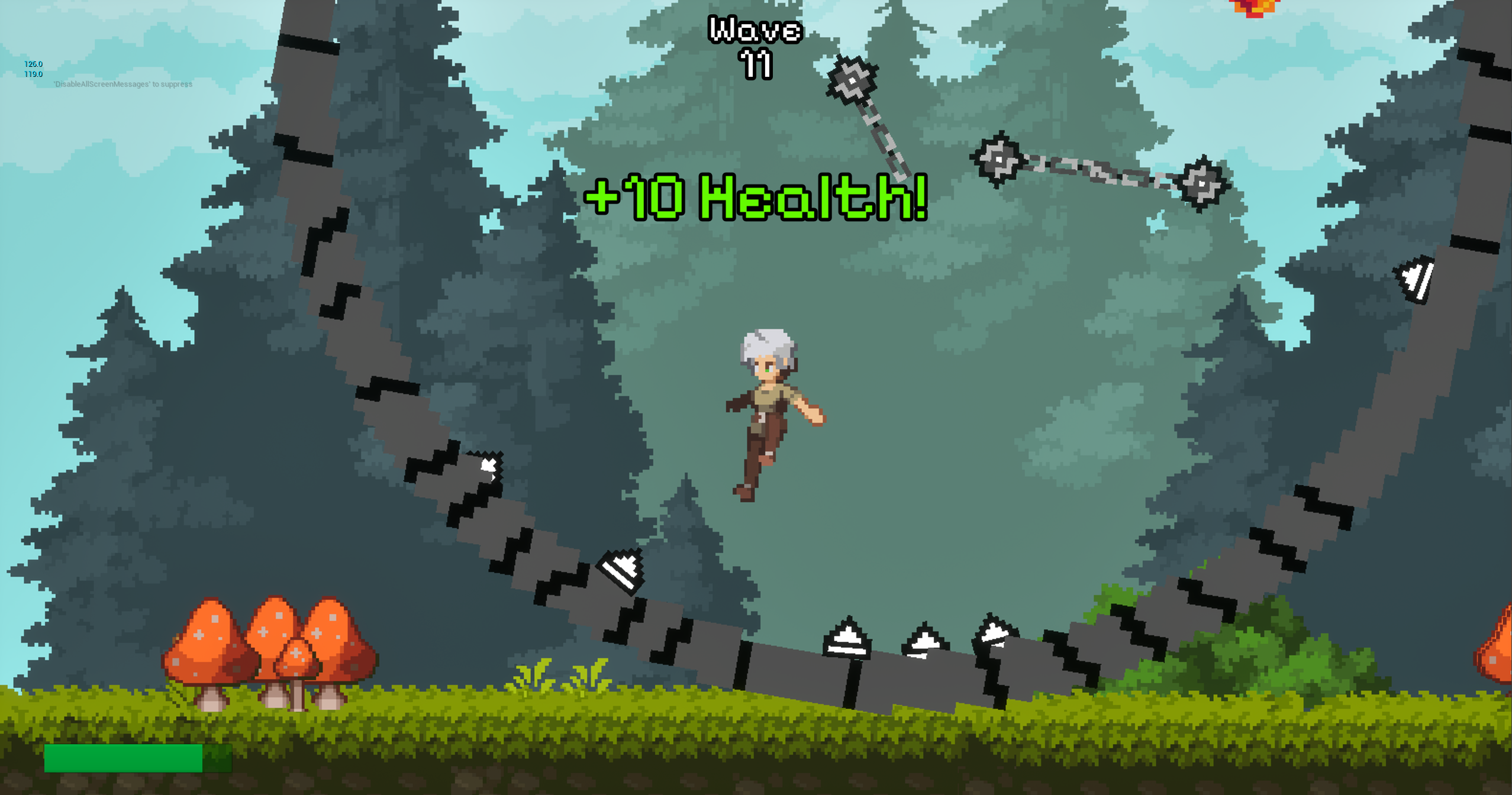 The character felt a little floaty at times. I would like to try this game with a higher movement acceleration, jump force, and gravity, so I can dodge more fluidly.