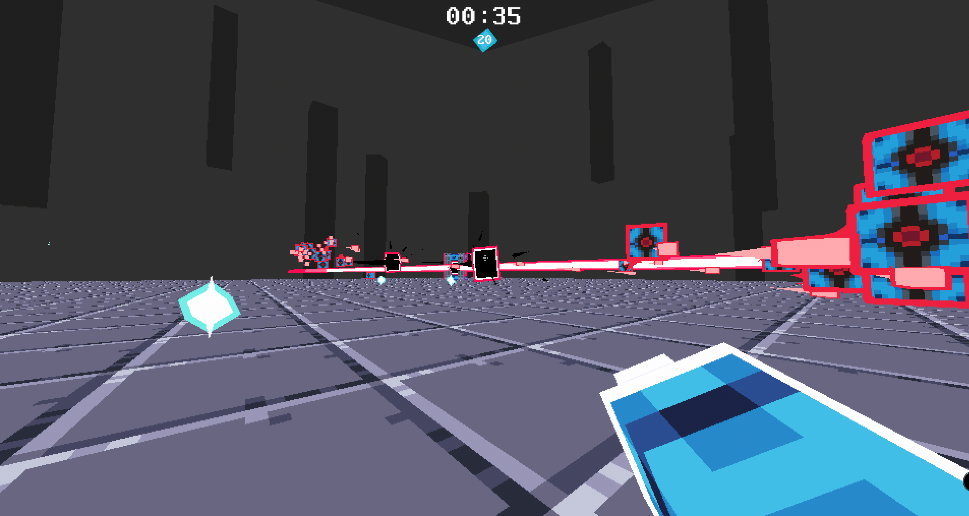 It's a repetitive game loop, inspired by devil daggers, the goal is to see how long you can survive, and if you don't survive long you just keep trying again until you make it on the scoreboard!