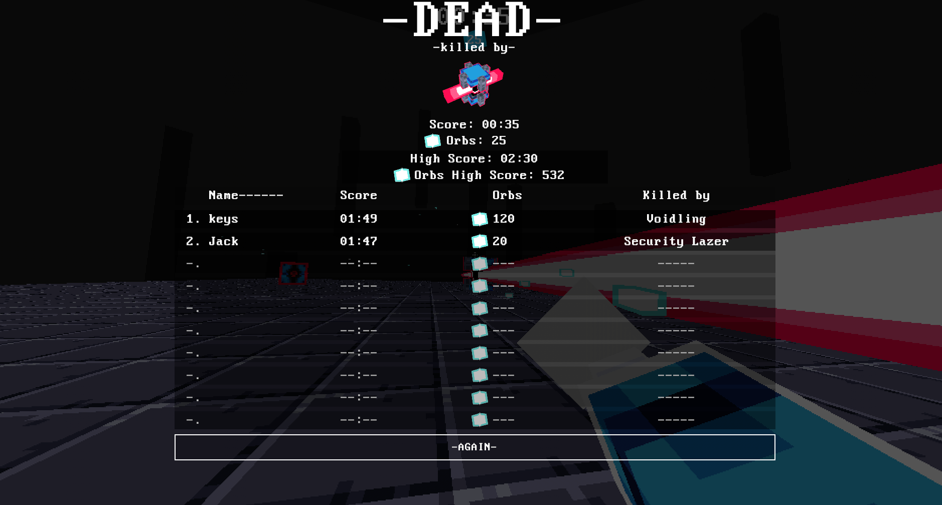 thank you for playing! I am working on an update for after the jam with some additional quirks and quality of life/performance improvements, hope to see you on the scoreboard in the update!