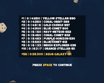 while i enjoyed the challenge, the game maybe felt a bit too difficult. i think there could be a visual indicator of the satellite locations so it relied less on memorization. or maybe a way to see your previous path as a whole, so you can keep the same line but focus on improving each time. either way, the game felt sooo polished, bringing the same professional energy your games have every year. such fun stuff -- excited to see what you make next!!