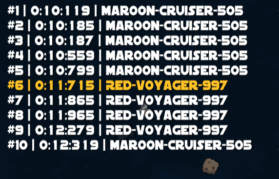 Is it all real people in leaderboards? Hard to believe someone make it in 7 sec when it needed like 4 to reach first satellite. Also starting from place 13 spaceships boosting from the start at doublespeed and i have no idea how.