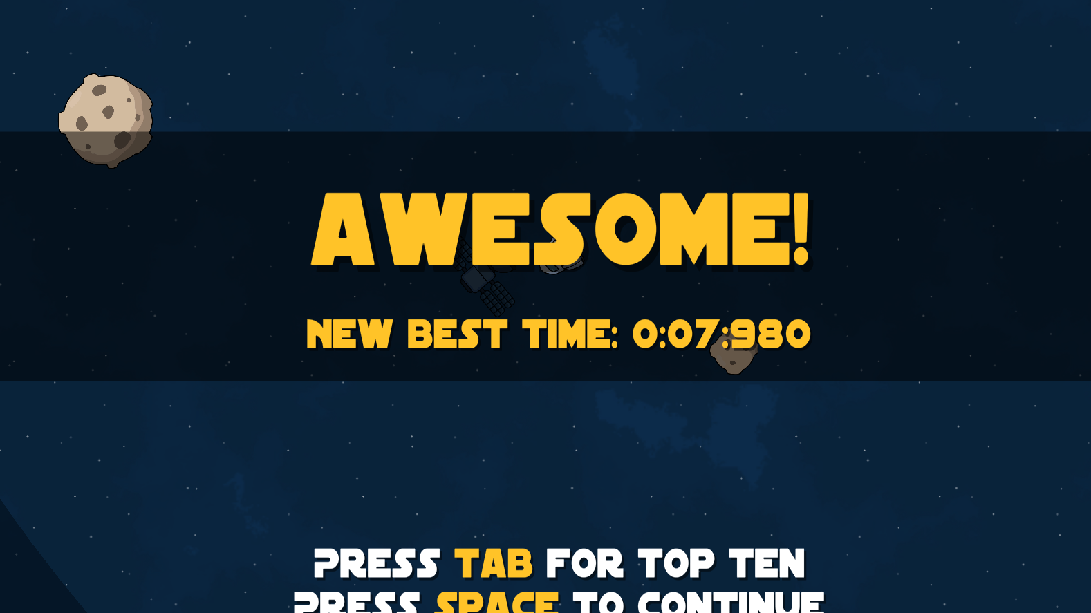 I love the premise and how you're encouraged to get a better and better time. I normally don't go for that sort of thing but I was practicing my drifting around the asteroids so much here. Good work!
