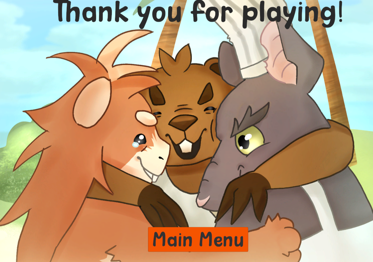 Thank you! Glad you enjoyed the ending, considering I only implemented it at like 3 am on saturday. Also I'll pass on the nice word about gooberfish to our art team - it was their idea.