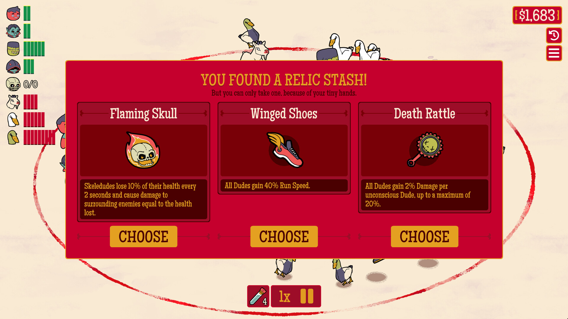 How Many Dudes is a roguelike (looping) design based on a meme question ("How many men does it take to defeat a gorilla") that loops back around the internet every few months.