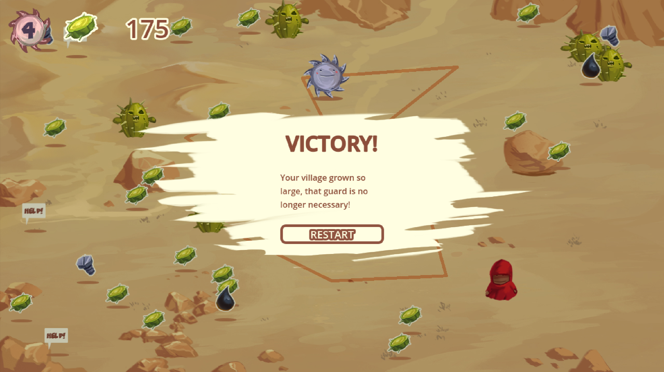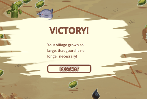 Finally got the time to play this game. It’s awesome! I got destroyed eventually and I don’t really know why, there were no cacti close to the village. Great game, it looks and sounds awesome! The main mechanic works really well. Good job!