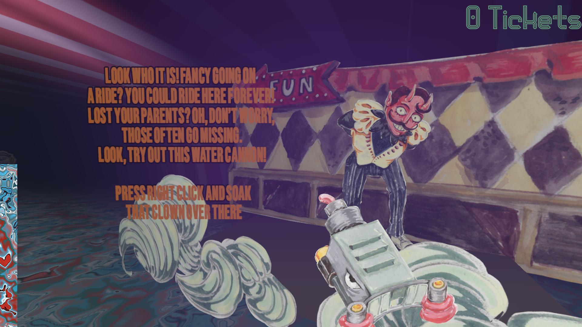 Wow, I had to download this after seeing the in progress pictures. Incredible work on the artwork it looks great and as a result the game has a lot of personality. I really liked each clown's different reaction to being sprayed with water. If you were to continue working on this after the jam, I would suggest to make the ride faster to start, since I started to wonder if the game was actually endless, I wasn't sure if I was going to reach the devil guy again. I also liked that he jumps if you spray him with water lolol