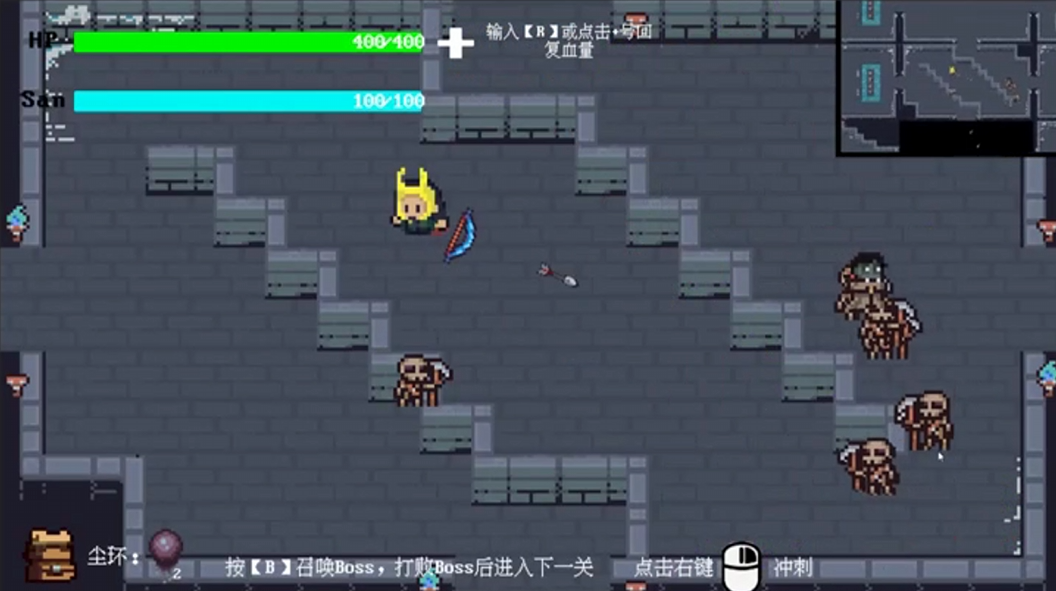 Thanks😊! The game is still a work in progress and is under active development, with many features yet to be implemented.You can press the B button to enter the boss battle, and then press the G button to proceed to the next level.
