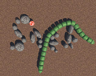 This could work well as a .io game with multiplayer! It's quite funny how you can eat your own tail too. It would be nice if some of the geometry was either clearly closer together or further apart so that there was less ambiguity whether you could pass through.