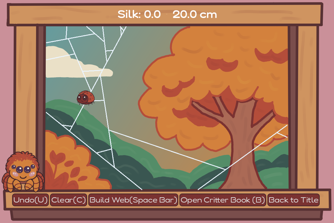 Loved the cutsy vibe and the graphics! Gameplay was simple & fun, though at some point the game softlocked for me and I could'nt add anymore webs, no matter what I pressed and also I couldn't start the "critter invasion".