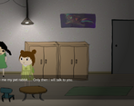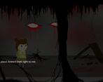 The game's art is very well done, including the art for the different rooms. I reached the terrifying area with 2 red eyes and I couldn't move so I assume that's probably the ending. Other than that, this game looks to be solid so far.