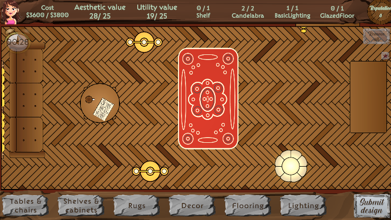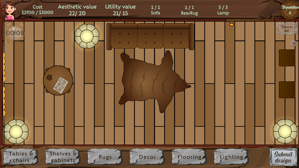 I have to say- I had fun. I could see this game as a bigger release, where you would get more and more complicated orders, with more and more constricting rules (such as 'no furniture near the window', 'no more than two chairs of same type').