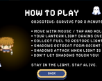 I appreciated having a pause button for a game jam, it was a nice bit of quality of life. Sometimes the z-sorting of the ghost sprites goes a little crazy and looks like a visual glitch with all the sprites getting shuffled around. The easter egg was a fun surprise and the lava lamp sprite looks super cool. Overall, I think you have a pretty fun core gameplay loop and the lantern mechanic is a cool twist. Some more cohesive visuals would take it to the next level. Keep up the good work!!