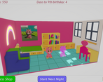 Really cute and wholesome game! THis fit the theme of One room perfectly and the gameplay was fun. I loved that you did all the art by yourself, the game looks great and the room is very nicely designed! On the gameplay a little bit of variety in the enemies/ toys would have made it even more fun, but its not a huge deal. THe upgrades and enemies were quite balanced and the power spikes were quite organic. The difficulty also could have been slightly higher since after getting the 2nd plushie i was invincible :D Overall the vibe of the game was very nice, the music and sfx were good and fit the theme. Well done :)