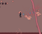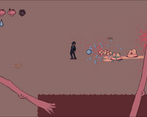 Sick ass game, one of my favorites in the jam, really well done :) The intro cut scene does a great job of providing context for the crazy situation and strikes some nice moments of poignancy and humor without over staying its welcome. My first impression when spawning into the game was awesome; the animated UI and pulsating music with the squishy sfx made for such a cool vibe, the ambiance is perfect. I do wish there had been some variance in the footstep sounds, even just randomly pitching them up and down a bit would have gone a long way imo. The player sprite is very cool, the little lean he does when idling has lots of personality.