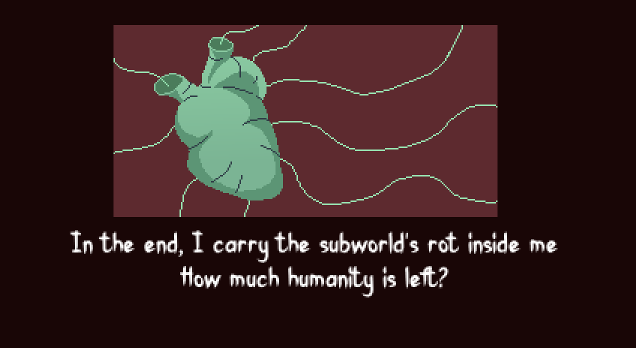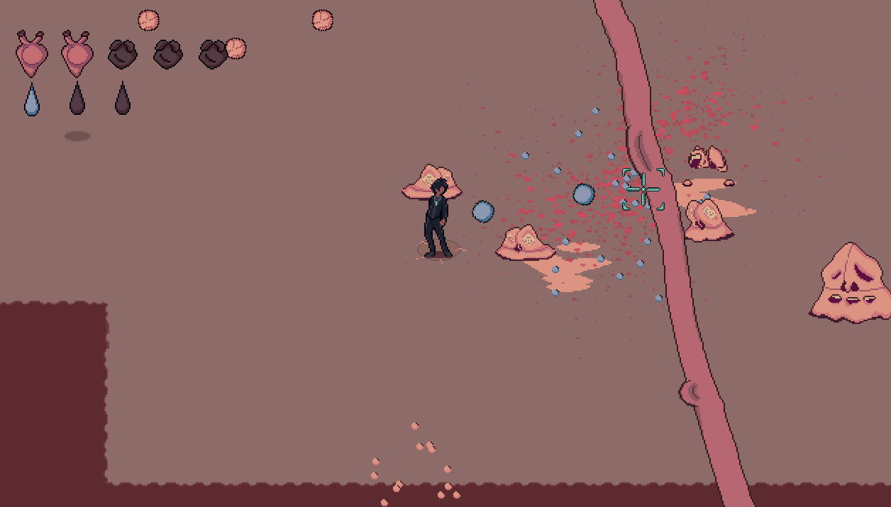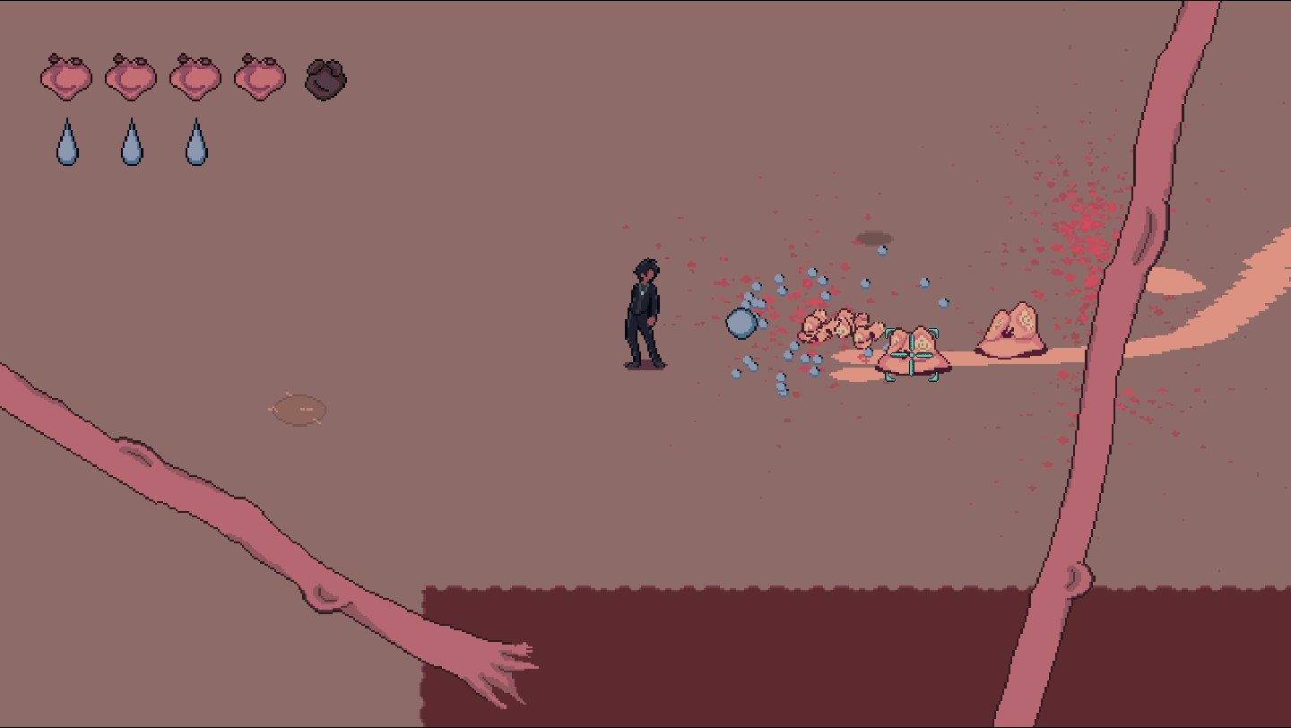 The intro was incredibly atmospheric! Absolutely brilliant. I honestly didn’t expect such an action-heavy game — you’re really versatile. I really liked the graphics and animation! The controls feel good, and the hearts are quick enough to defeat — neither too spongy nor too easy. I often felt like I wanted the character to move a bit faster, though this might be because the animation looks more like walking. At the same time, it reinforces the feeling that the floor is covered in slime — which is probably intentional? :)