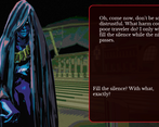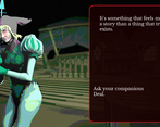 Since this is a visual novel, I don’t think I have much to suggest in terms of gameplay, maybe just some sound effects to make the atmosphere richer and the story more immersive. Perhaps a typewriter effect could increase the tension, along with sound effects tied to what we’re reading at specific moments in the narrative (but of course, with an option to reveal the entire text at once for more impatient readers).