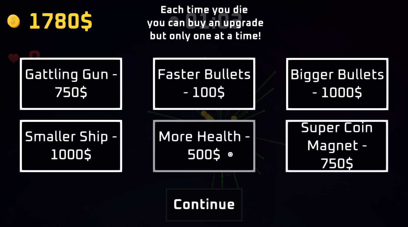 Getting upgrades after dying adds a new twist to the theme. Controls are smooth. Well done!