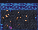 Sometimes it was a bit difficult to trigger the rock throw. I liked being able to strategize for a bit while holding the rock and thinking what kind of trajectory I'd use and then I'd throw it and it wouldn't go anywhere. I assume you use some kind of mouse position difference calculation to determine the "velocity" of the throw - it can be a bit finicky at times but nothing that can't be really solved eventually :) It only happened occasionally.