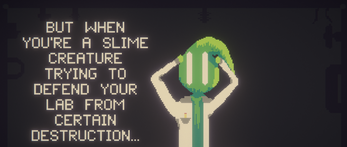You play as a professor who has accidentally turned himself into a slime creature. The bad news is your lab defenses are on the fritz. The good news is you have all the powers of a goopy superhero. It's now up to you to protect your lab.