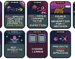 - A+++ game, this is amazing! The take on using an internal defense mechanism as a weapon is truly thinking outside of the box. Extremely well thought out GDD and implementation of systems make this game a smooth, well polished, product. The art style fits well, with solid consistency between effects and cards; the card usage is intuitive for actions and triggers make sense. The design of the cards - attacking with shooting bacteria with cells vs dealing with rna virus invasions - is great, and the inclusion of multiple types of defense and support cards that are themed well is just cherry on the top. Game difficulty ramps up smoothly with the inclusion of viruses on wave 3-5 and additional bacteria as time passes. Having a time based cost of ATP pips critiques & improvements: one key aspect of deck builders is player choice in crafting the deck - youve got the addition of cards down pat, but it would be great to see options to deny choosing a card so you can have limited card runs, or remove cards from the deck without having to discard. Make a cost for having high or low card counts to give the player conundrums to beat a la "Slay the Spire". What is the end state for the game? Is there a win condition or just go as far as you can go like tetris? Adding a second layer to the game between levels to defeat bigger and badder bacteria/viruses would be a great next step for development.
