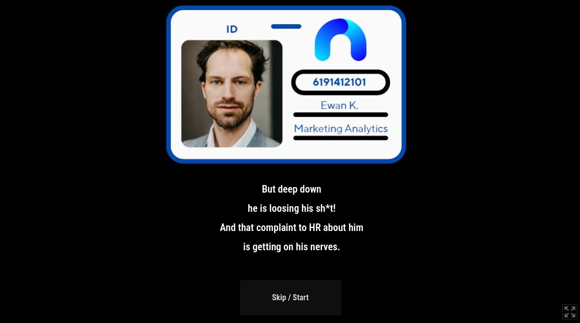 Survive 9-5 is a dark comedy dialogue game about surviving one brutal corporate day as Ewan K., a burnout with only 4 nerves left to spare. Players navigate four increasingly absurd office meetings HR, boss, birthday party, and a spaced-out coworker through fast-paced, randomized dialogue trees.
