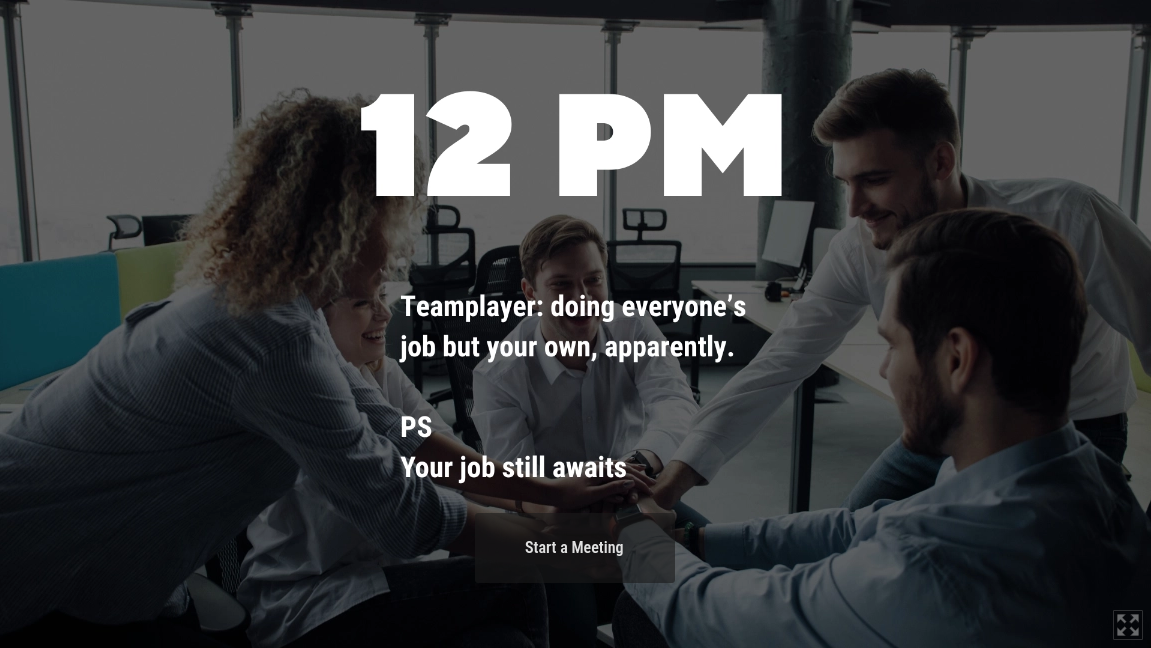 The 9-5 burnout is real. The 4pm forced party was too on point lol great game!