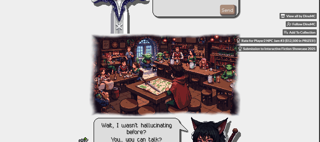 Thanks! :) I used modular sprite assets, ie. combine hair sprite, clothes, body, ears, etc... to make new characters! And I drew the portraits. For the AI I have them "talk" in the background to cache the answers whenever possible. Eg. If you have a scene where "speaking order" goes : Player -> Noire -> Lunara -> Noire -> Lunara -> Player, as soon as the player speak and the game receive Noire's answer, I send it to Lunara in the background, then her answer to Noire, ... so by the time the player click to go to the second line I already have stored up to the 3rd or 4th, basically.