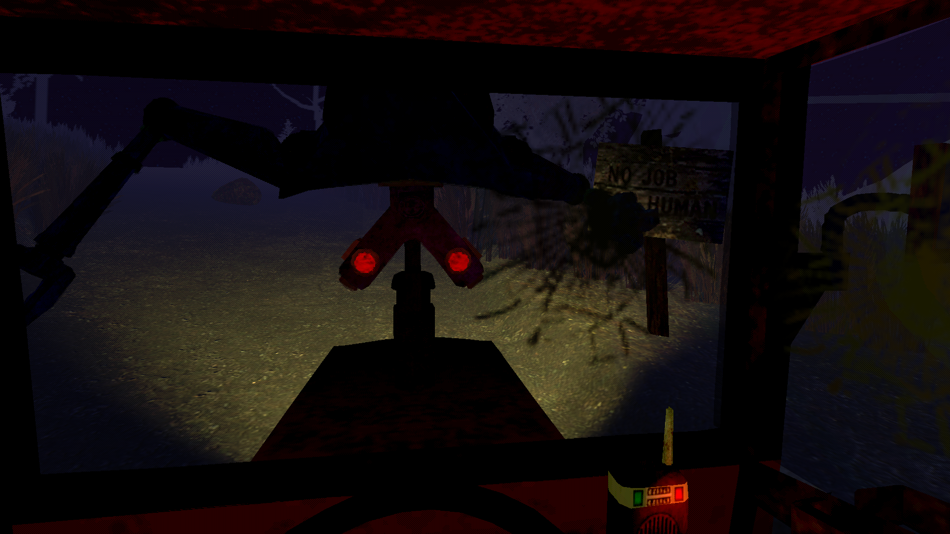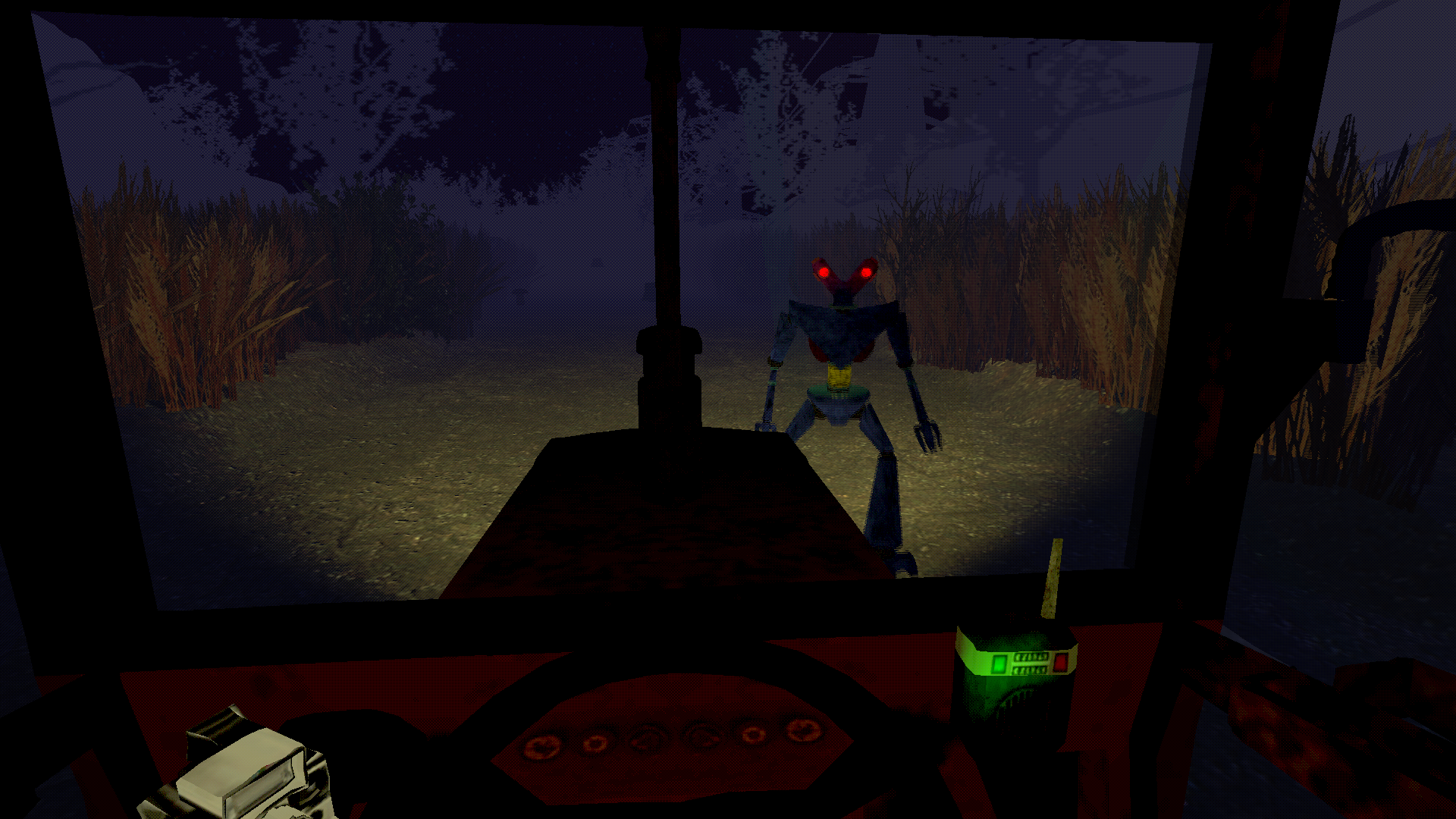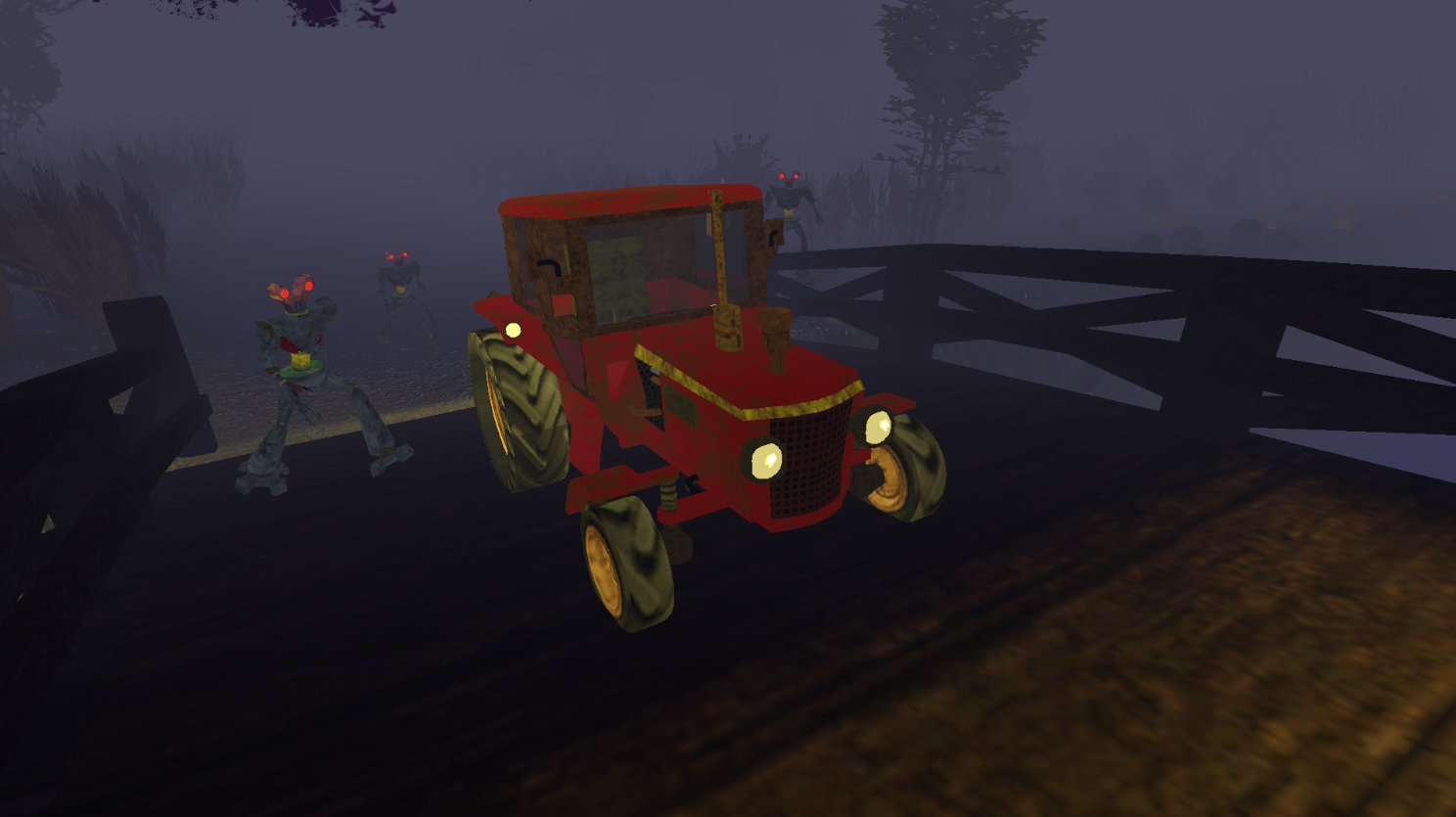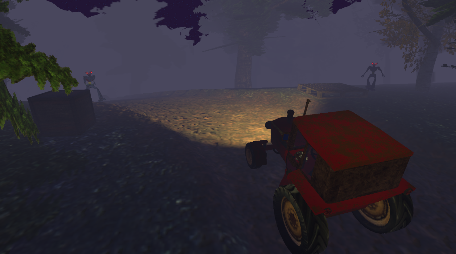 This project was definitely made by someone from the United States. Driving a tractor and getting a jumpscare is very original, haha. Good job! The only thing I noticed was a slight bug where the tractor flipped and I went off the map. I don't think there's a collision in the barn if you try to reverse, and I really only did it to see if the robots would follow me. Stunning the robots was a bit difficult, but I loved the atmosphere, the sounds, and the classic-style graphics. Congratulations!