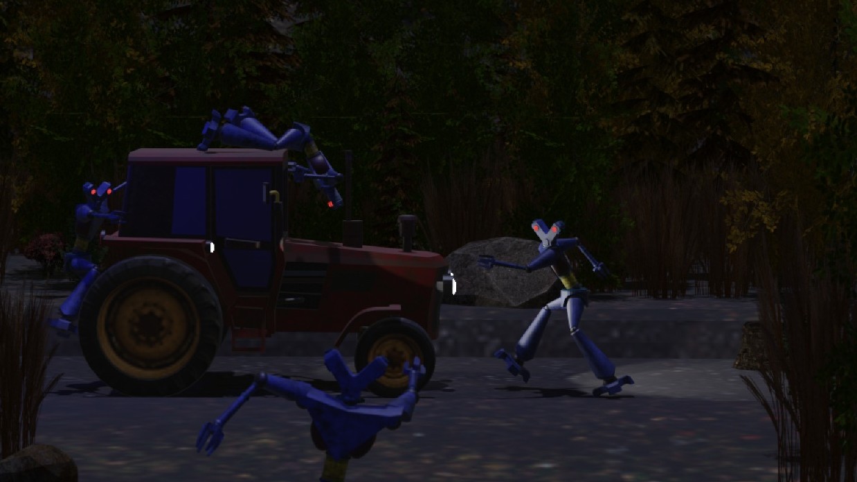 However, you might want to fix a *tiny* little bug where the robots manage to gang up on you and start pushing you around, overturning your tractor, making you start driving up towards space and then falling back down onto the ground repeatedly...