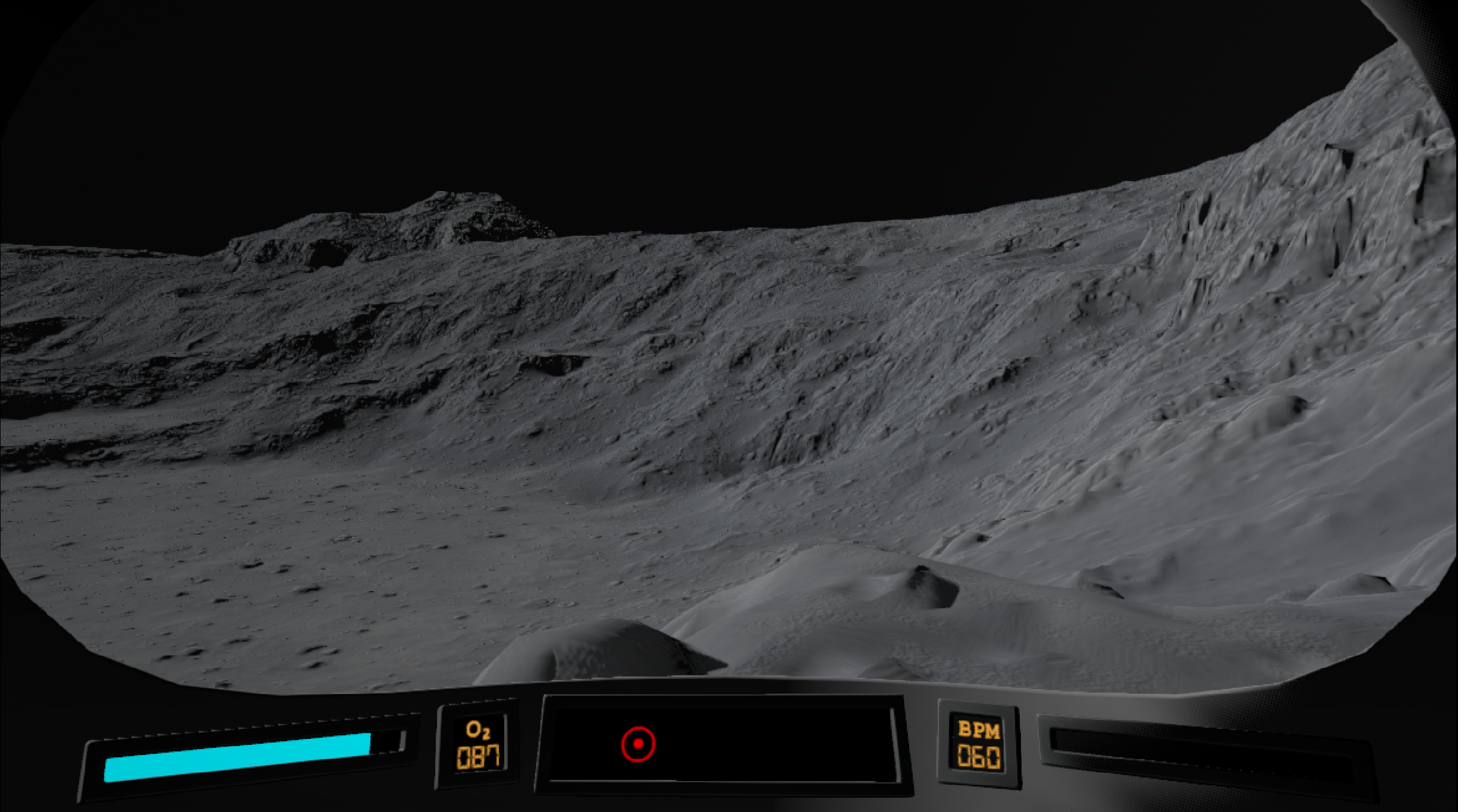 The realism pleasantly surprised me! The oxygen/bpm counter is a clever stamina system. The tunnels definitely had me very tense. My only complaint would be how far the player had to walk for each section. Giving the player a moon rover (even if you kept the travel time the same) would likely make the traversal much more tolerable/fun. Awesome work!