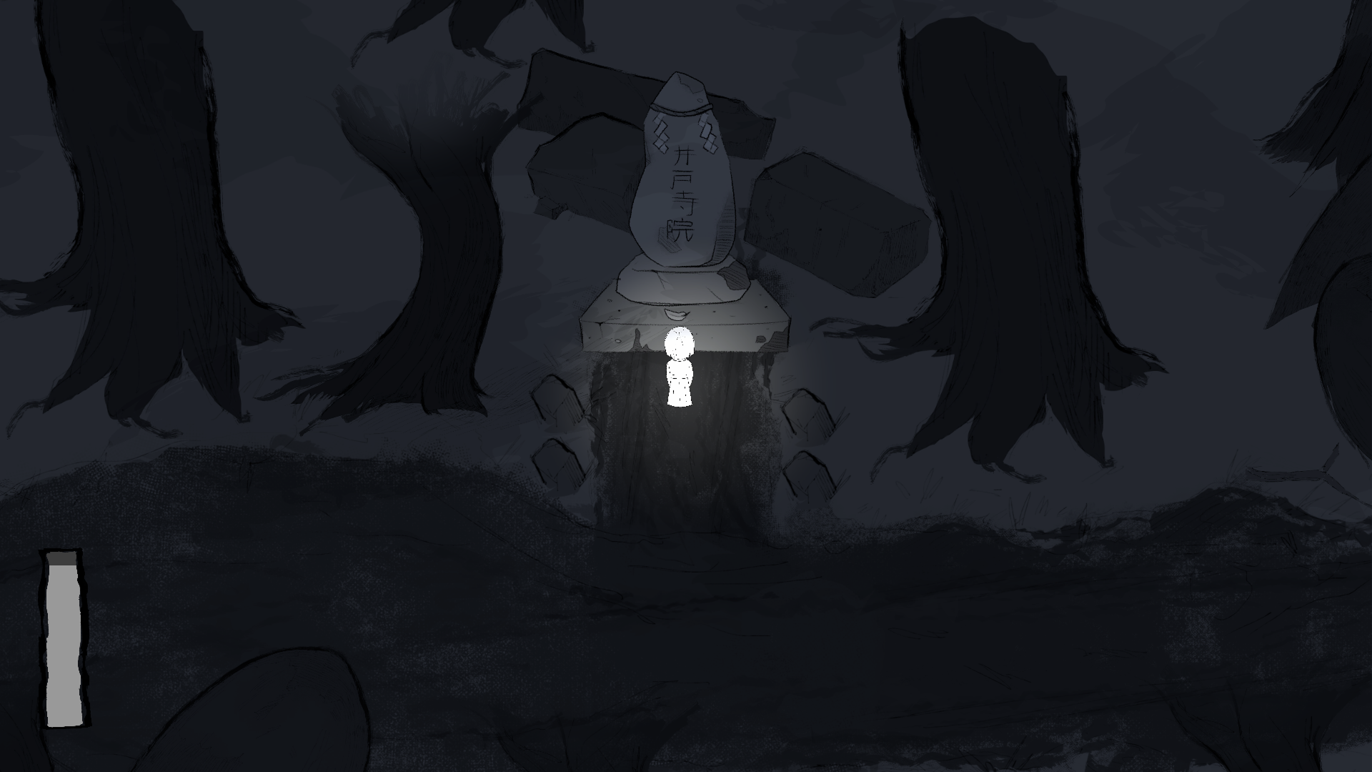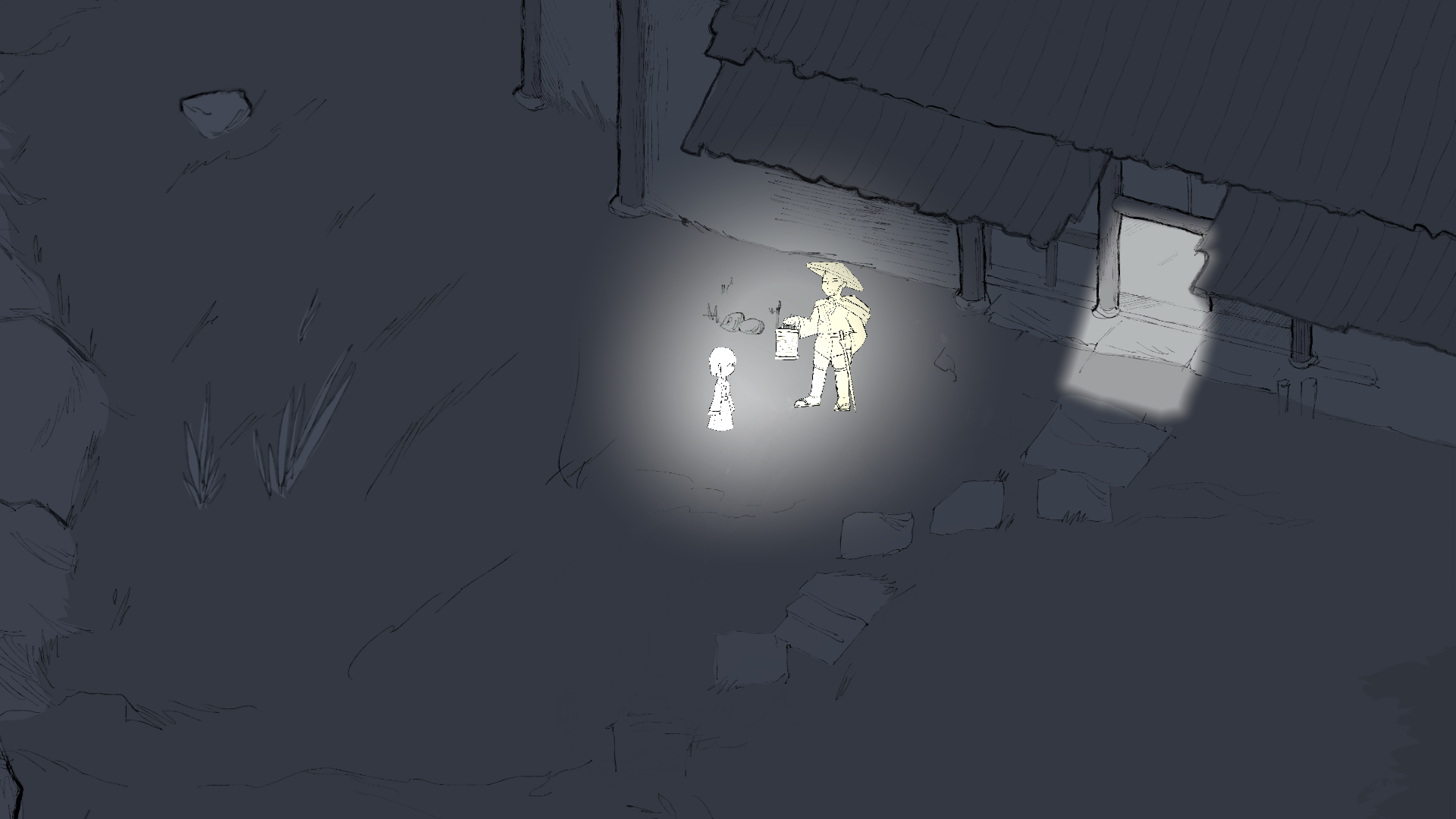 We had planned out more levels and the story would have progressed in a similar way between the gameplay sections. So this is why the story ends a bit abruptly, because we made the decision to cut most of it out rather late - and redoing the entire narrative to fit in just one night would have felt wrong and I think it also would have clashed with the atmosphere the art was building up to.