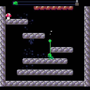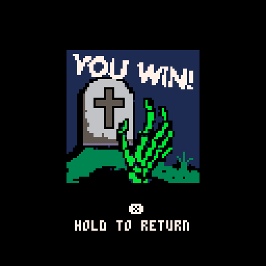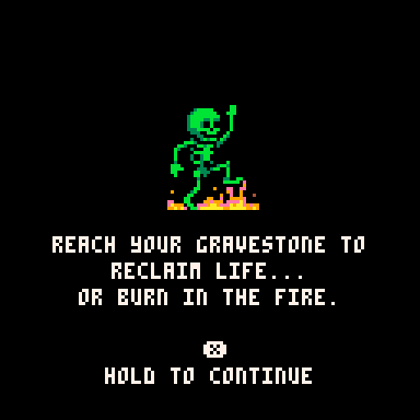 Really great submission. This is something straight out of UFO50 or Nitrome. The game is crazy hard right out of the gate though, especially with the disappearing platforms, but it was still quite enjoyable. I had a run where i made it about 60% of the way to my gravestone. The art and music are on point, and id love to see this expanded out into a full game.
