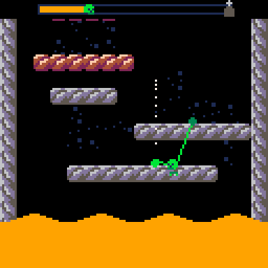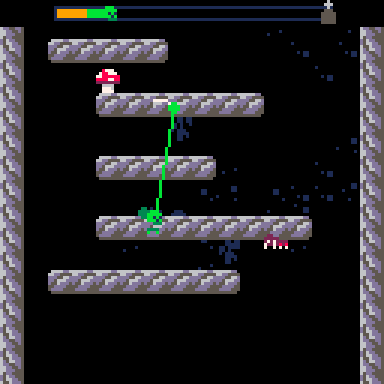 Pico 8, I love it. This is a legit retro style game. Took me a few playthroughs to really get used to the arm swinging mechanic but fun once you get going.