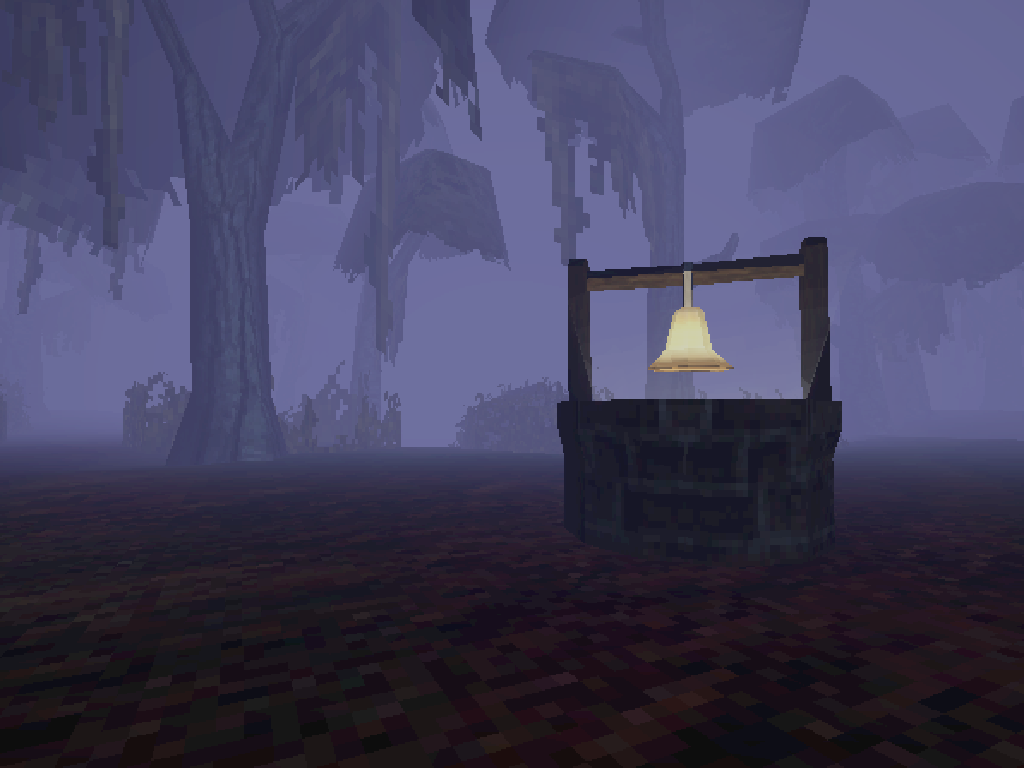 The art direction and use of the PS1 vertex shader add to the experience. I can't say the jumpscare got me, but the game's atmosphere did keep me on edge, despite there not being much besides the swamp ambience. Having the ability to stun her when she chases you is a great addition -- it makes you feel like you actually have a chance once the sequence starts and you're close enough to a bell. Thankfully, I never had to use it much.