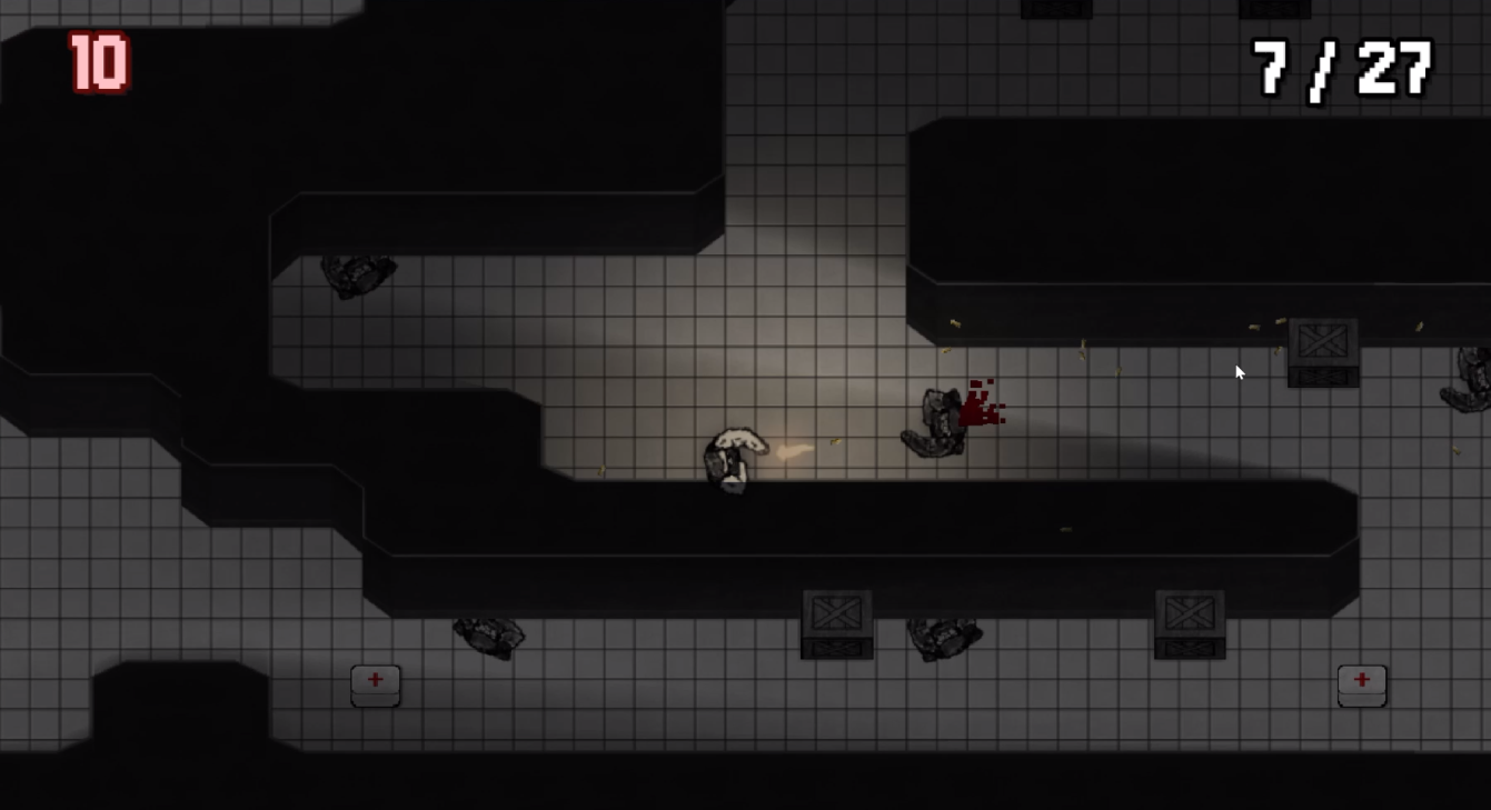 This is a fun little game. I like the art style a lot. Though i do gotta dock ya points on a few things ago. I dont know if this is intentional but the main character was shooting out of his fingers. At some points i could walk straight up to the enemies and they wouldnt notice me. And an "out of ammo" prompt or a gun clicking sound would be nice cause there will several instances where i was out of ammo and didnt realize.
