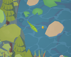 If you guys ever wanted to take this further, would you consider reserving the green shade just for our main character? My eyes got a bit confused (not much, just a little) whenever the spiky vines and balls showed up. In addition, between the rocks and the logs, our character would have a much easier time diving under the logs--most of the rocks seem big enough to have a foundation that connects with the riverbed.