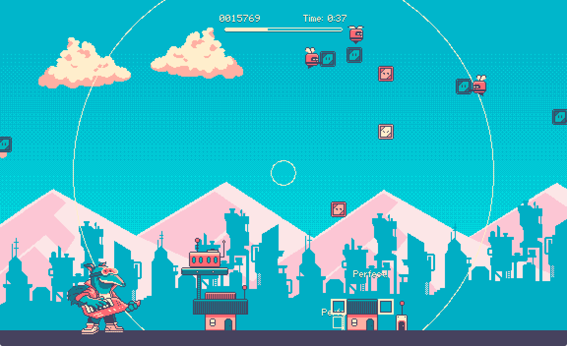 As for the making process, there were a few handicaps I've had. I've played a lot of Rhythm Heaven last year so I understand rhythm games and how they work pretty well. In fact this was one of the inspirations behind the gameplay! And I've been self-studying a lot on the topic of how the games work and what I feel is necessary, hence some particle effects because they really give a lot of life to the game!! I still wish the menu screens had transitions, because that would also make the game much more alive. I also wanted to put this knowledge to use for your submissions, and that's why my comments on the other submissions are so detailed! I hope I can help other people make great games too!! :D