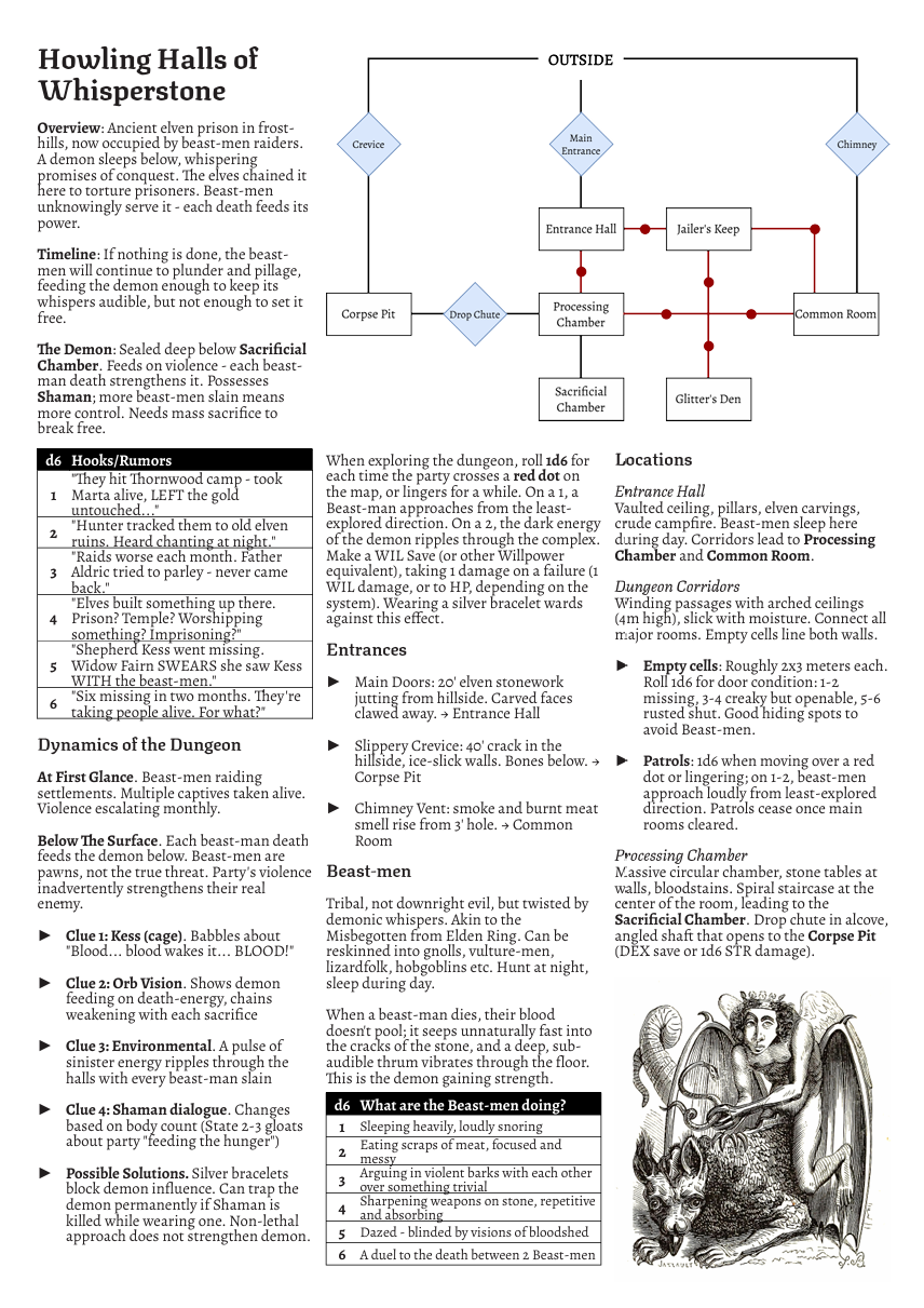 HOWLING HALLS of WHISPERSTONE - System-agnostic Beastmen Dungeon