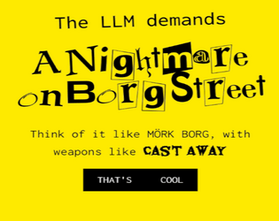 A nightmare crawling adventure on YOUR street! compatible for mork borg and Cast away by Afterthought Comittee