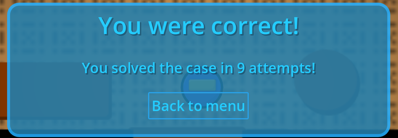 A bit more leeway, with guesses would have helped in my opinion. for example if you got 50% right, get one extra chance and maybe a checkmark on the mask that was correctly guessed or a crossout if it was wrong.