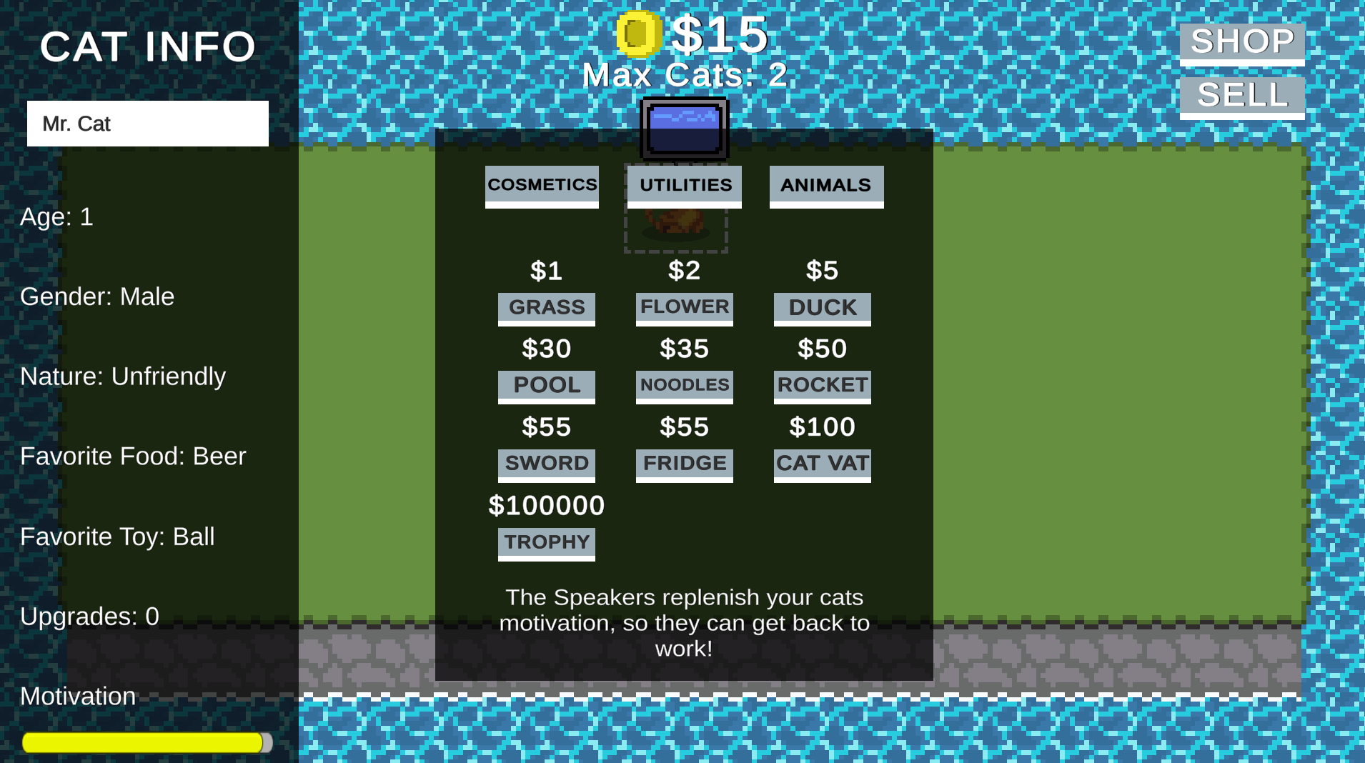Check out my project here: https://jamemakegame.itch.io/day-trader-cats