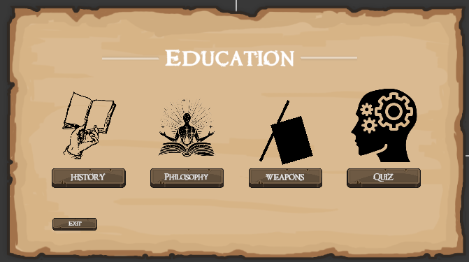 1. addition of educational menus (history, philosophy, weapons, and quizzes)