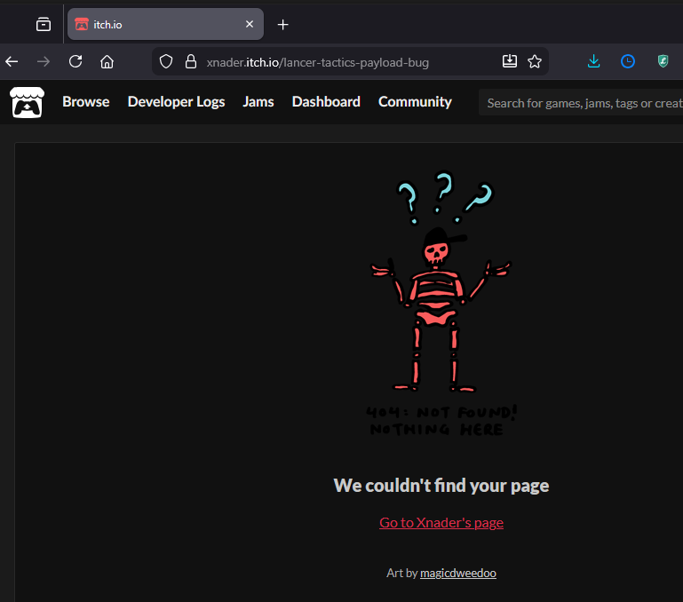 PSA: Itch has been getting swamped with links to malware. I’ve been deleting topics as soon as I see them pop up (posted by users with names like “support@itch.io” or “Developer”) but they usually are up for a few hours before I catch & ban them.