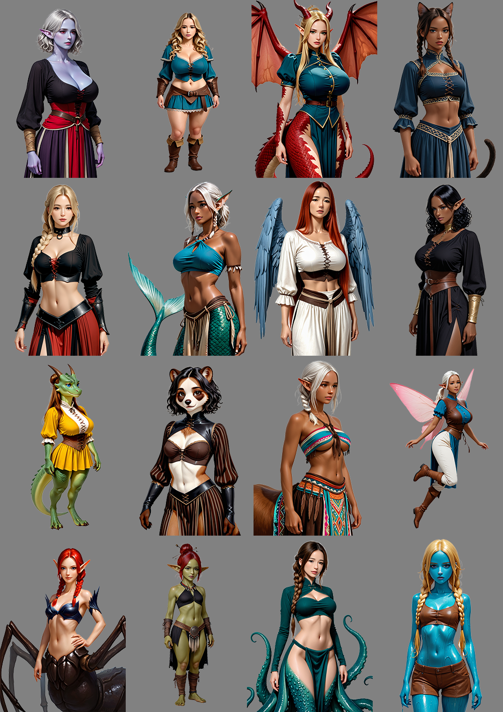 All races, all sexes, clothed, nude, and pregnant. 1281 characters included.