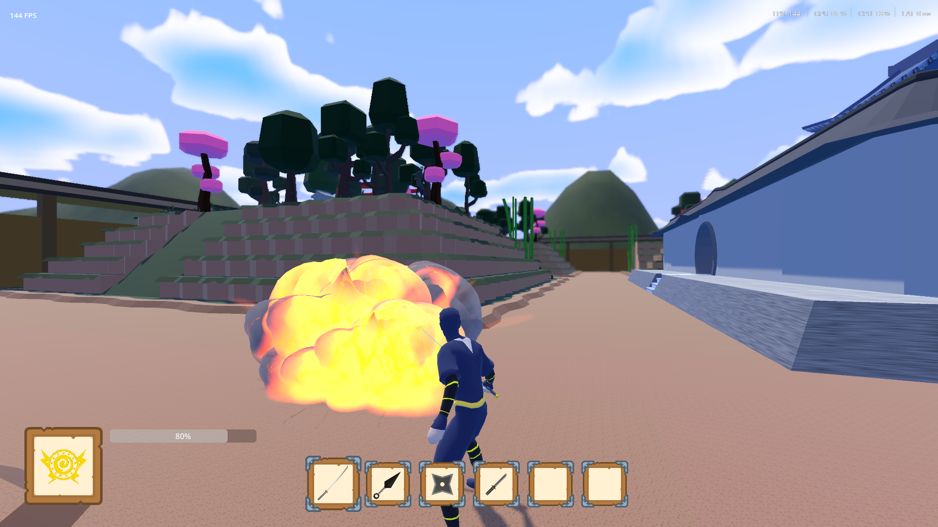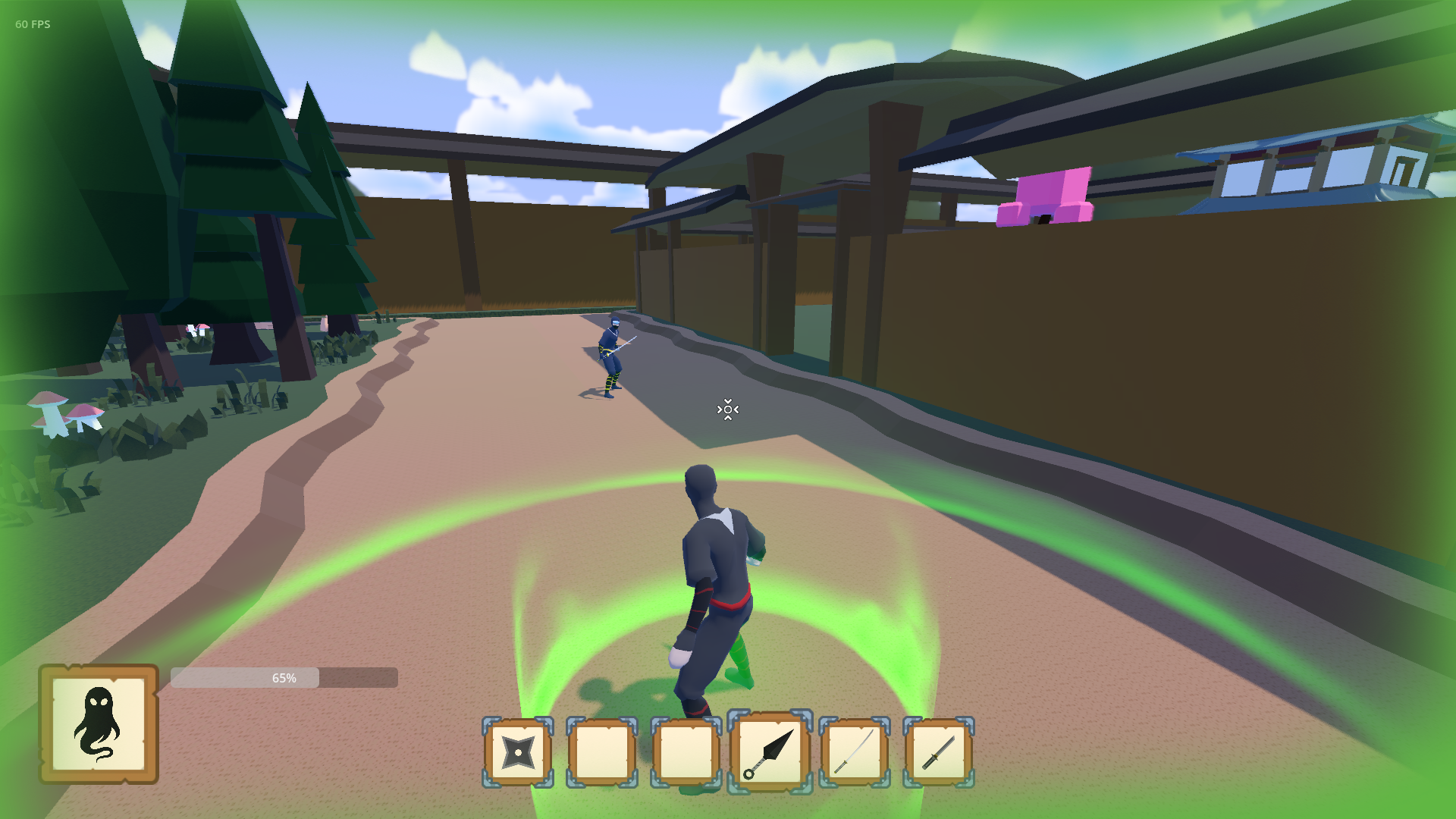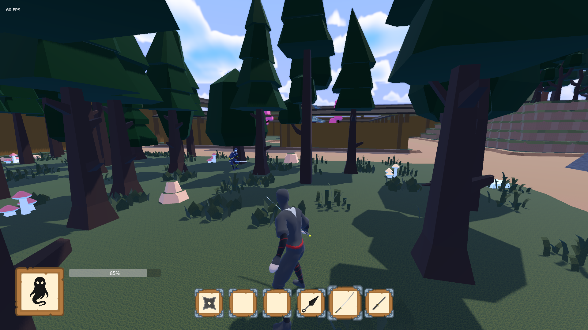Shinobi Duel is a 3D third-person multiplayer ninja brawler designed for chaotic 2v2 battles with friends. Collect scrolls to learn powerful jutsus, wield deadly weapons, and dominate randomly generated maps built from chunk-like tiles for endless variety.