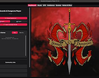 A cinematic companion desktop app for TTRPGs music, SFX, ambience, visuals, notes, and dice.